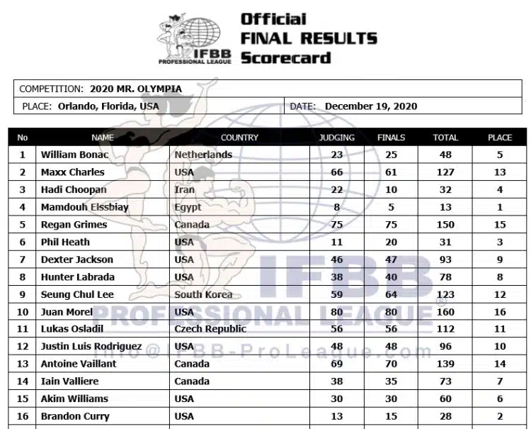 Największa walka toczyła się o najniższy stopień na podium, stoczył ją Phil Heath oraz Hadi Choopan, jak się okazuje, różnica między nimi wyniosła zaledwie 1 punkt!